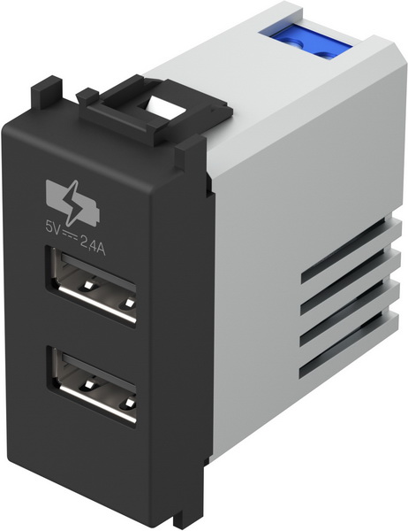 PRIKLJUČNICA USB 2-STR. 5V 3,0A CRNA MAT 1M MODUL EM68SB