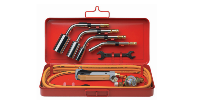 Plinski plamenik za profesionalnu upotrebu sa toploskupljajućim cijevima, sa setom opreme u kompaktnom Powercase kovčegu
