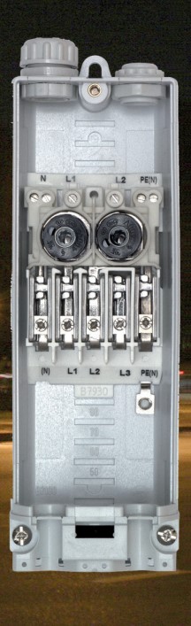 Razdjelnik / razdjelnica za rasvjetni stup, za kabel do 4x35 mm² i s dva podnožja za cilindriče osigurače 8x32 mm