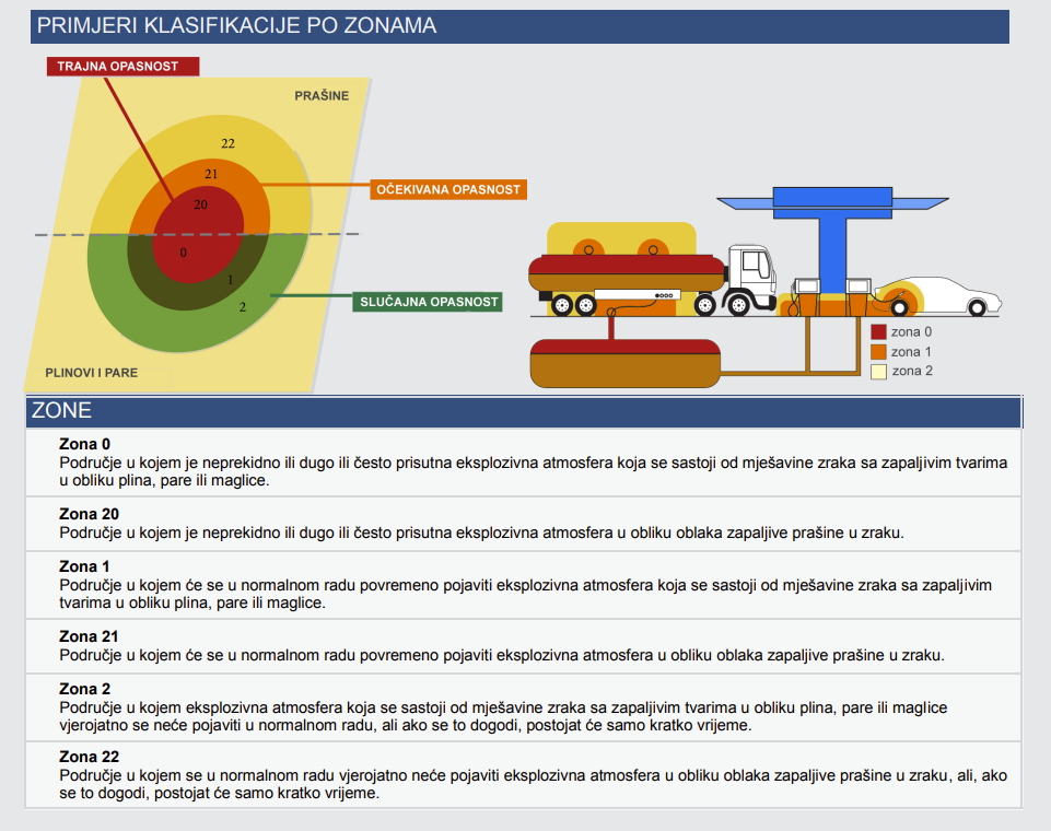 Zona primjene: 21 (područje u kojem će se u normalnom radu povremeno pojaviti eksplozivna atmosfera u obliku oblaka zapaljive prašine u zraku)
