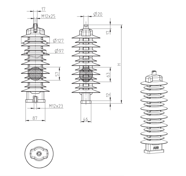 - metal-oksidni odvodnik prenapona bez iskrišta (MO surge arrester), u zalivenom silikonskom kućištu, sive boje, dizajniran i ispitan prema IEC 60099-4