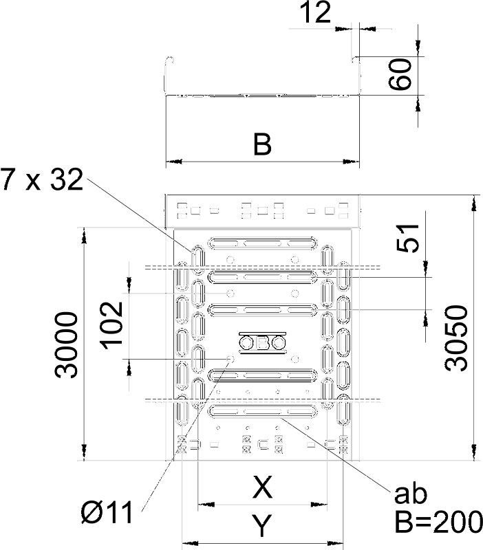 s uzdužnom perforacijom 7 x 20 mm za montažu konzole, od širine 200 mm s poprečnom perforacijom 7 x 32 mm