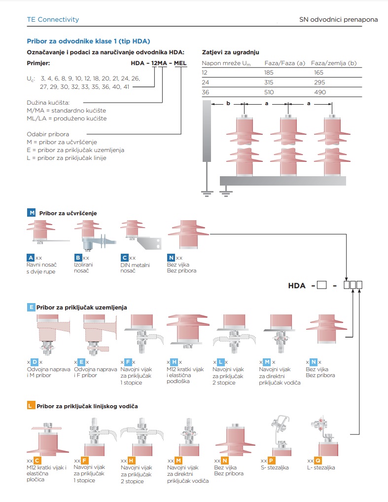 Tehničke specifikacije: HDA-MA i HDA-M srednjenaponski odvodnici napona