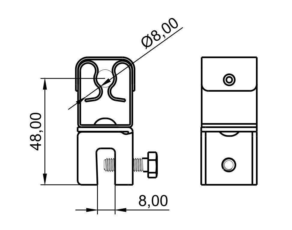 Primjena: krovni nosač tip GKNL 051 M namijenjen je za montažu okruglog vodiča promjera Ø 8 -10 mm na krov pokriven limom