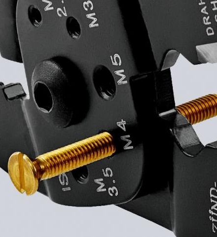 - s rupama s navojem za odsjecanje bakrenih ili mjedenih zatika s navojem s M 2,6; M 3; M 3,5; M 4 i M 5