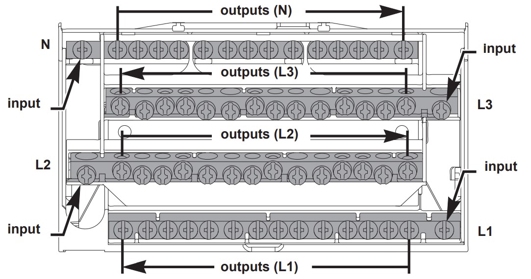 DISTRIBUCIJSKI BLOK VIJČANI 4P 125A 4x12 PRIKLJUČAKA 4x35(25) mm2 / 16x16 + 28x25 mm2 LGY412548