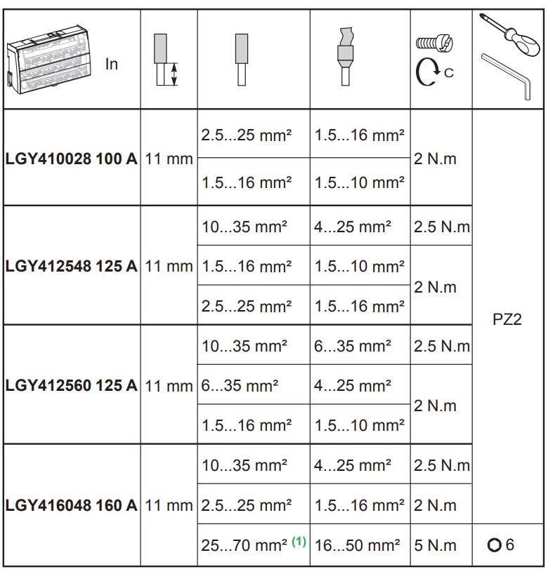 - priključak odvodnog vodiča 16 rupa do 16 mm² i 28 rupa do 25 mm²