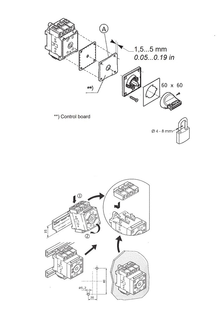 Rastavna sklopka, rastavljač, za ugradnju na vrata, DIN nosač ili na montažnu ploču