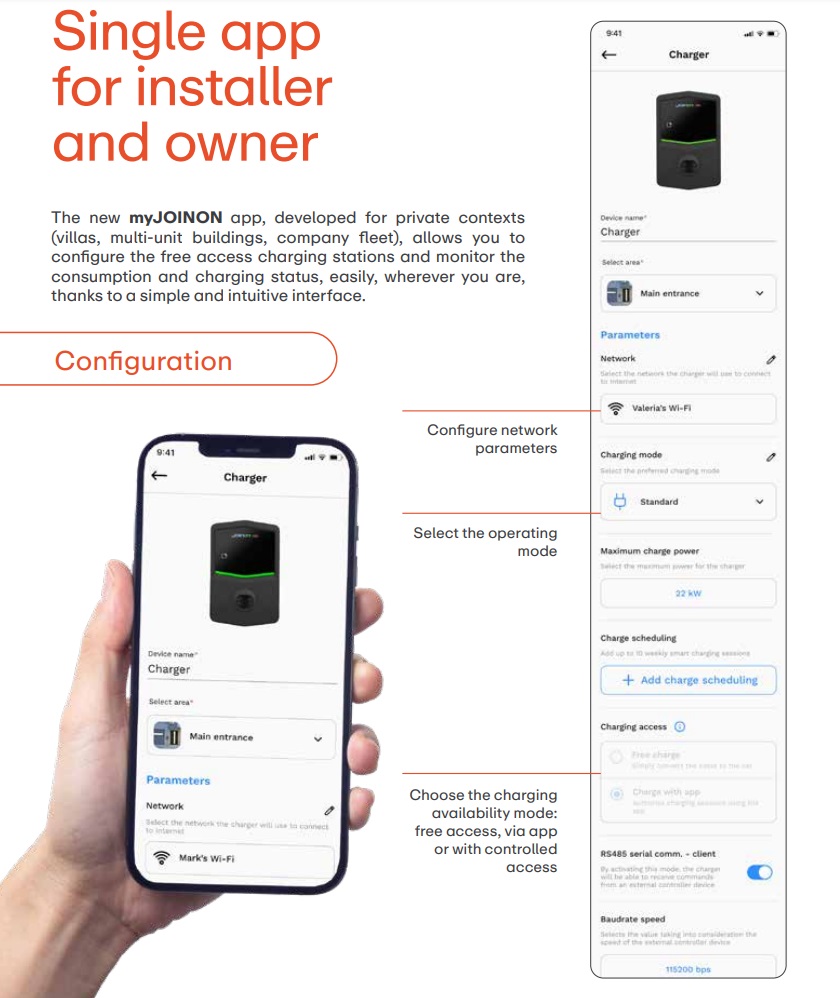- snaga punjenja se konfigurira putem myJOINON aplikacije preko koje je također moguće pratiti potrošnju, stalno ažurirati wallbox, primati obavijesti u vezi sa stanjem sustava i punionice i još mnogo toga